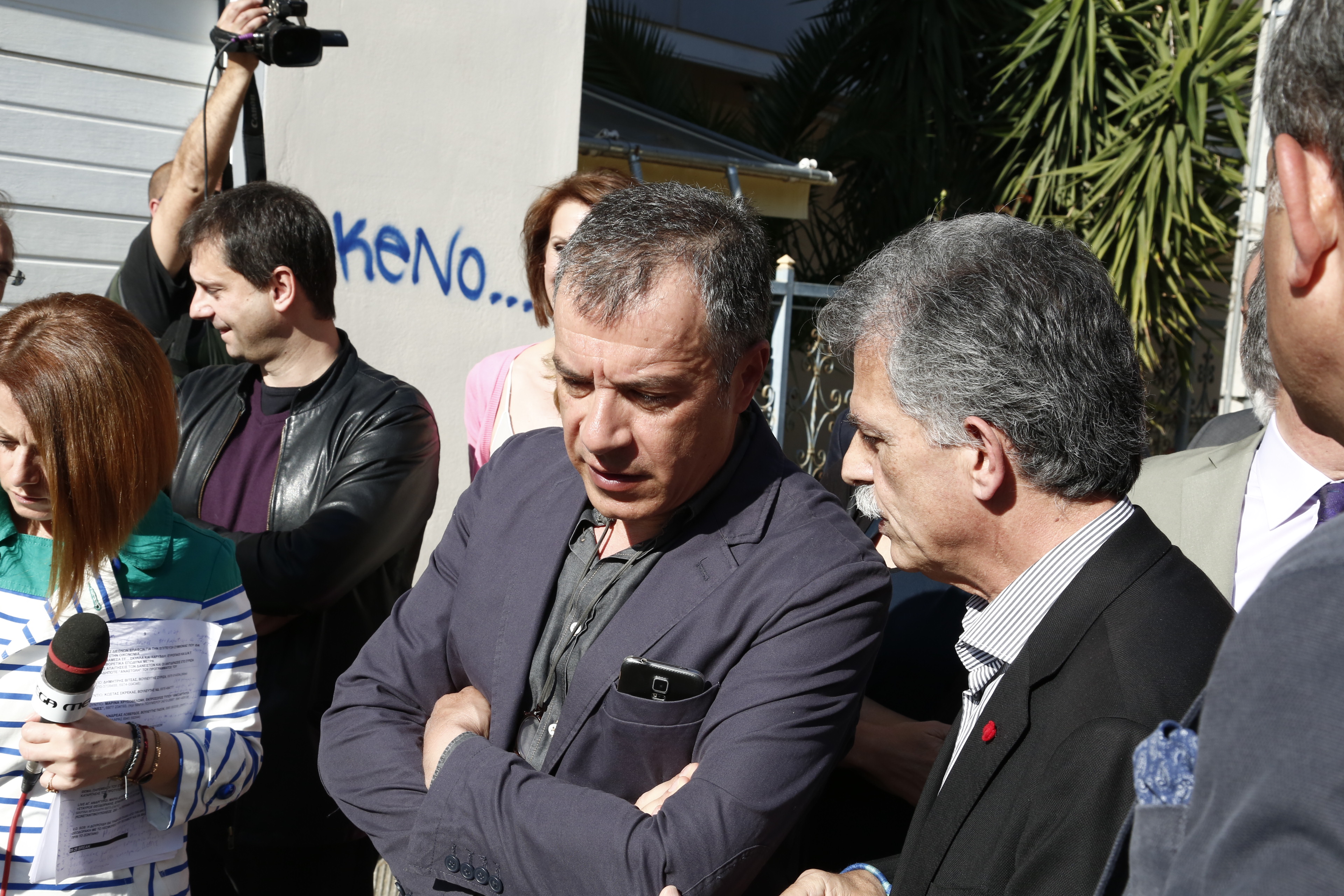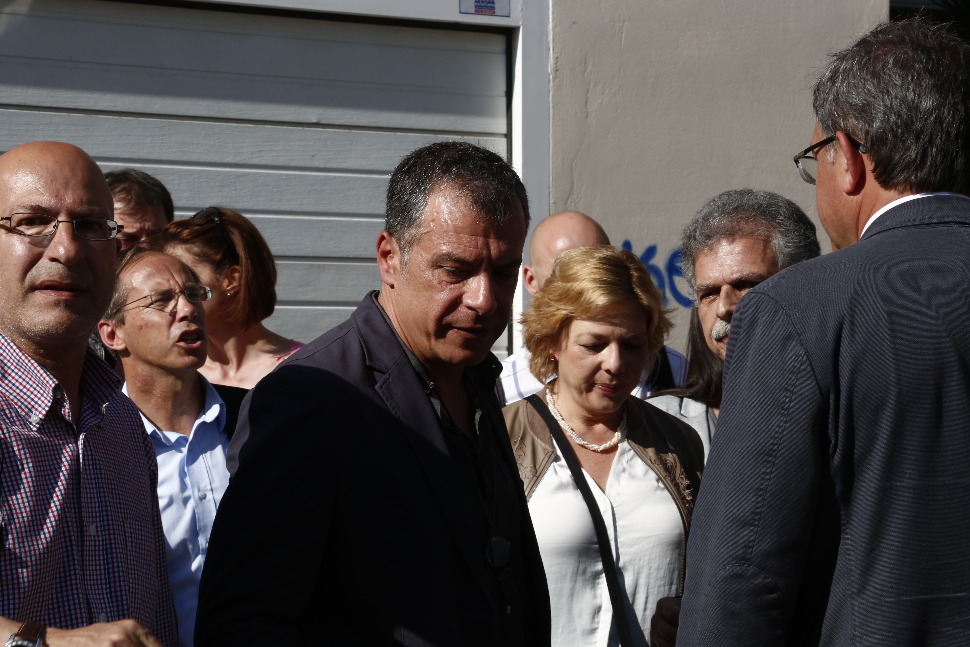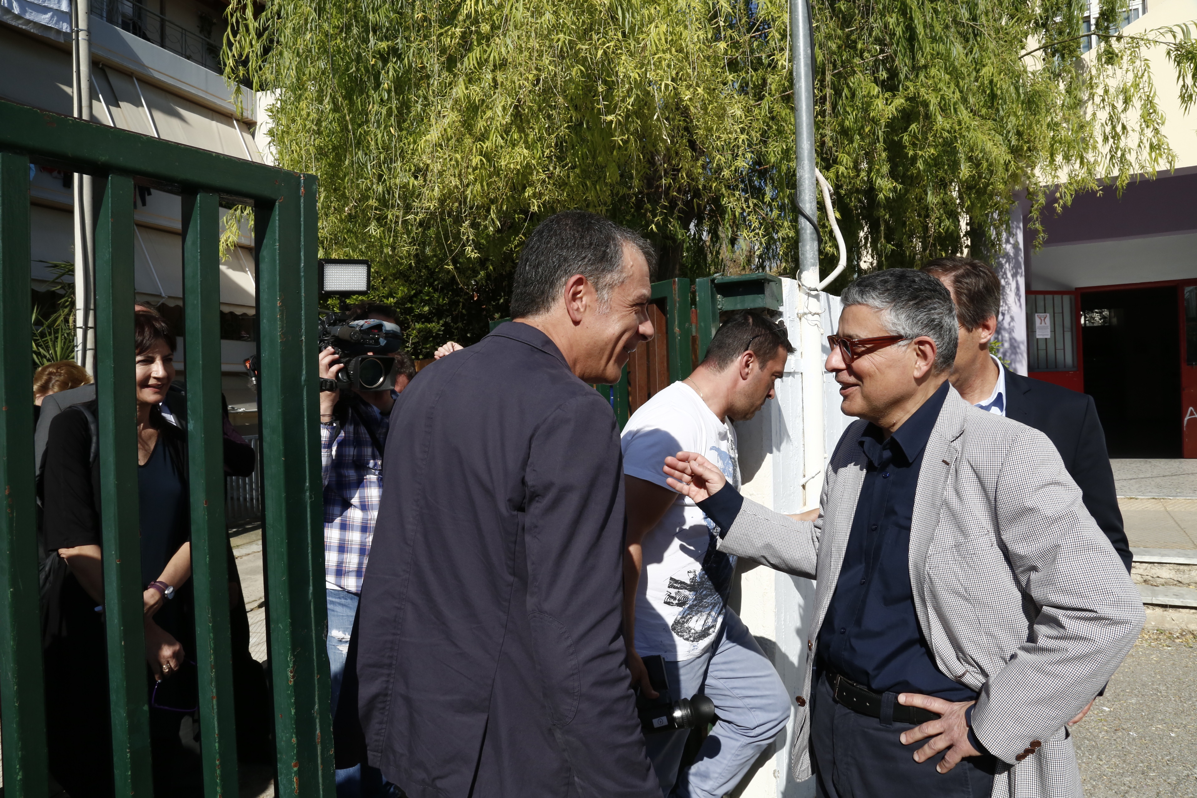 Ο Σταύρος Θεοδωράκης και άλλα στελέχη και βουλευτές από το Ποτάμι βρέθηκαν το πρωί της Τετάρτης έξω από το Πρότυπο Πειραματικό Λύκειο Αγίων Αναργύρων.