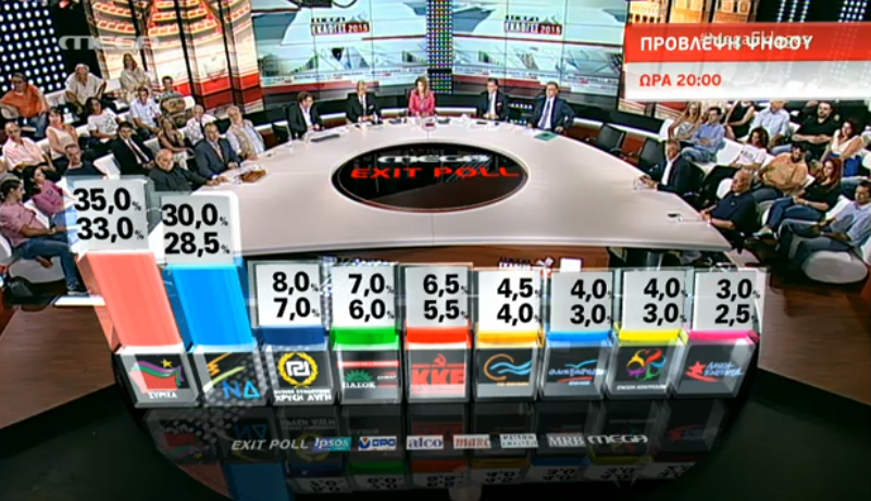 Τελικό exit poll: ΣΥΡΙΖΑ 33-35% -ΝΔ 28,5-30 % -Χρυσή Αυγή 7-8%