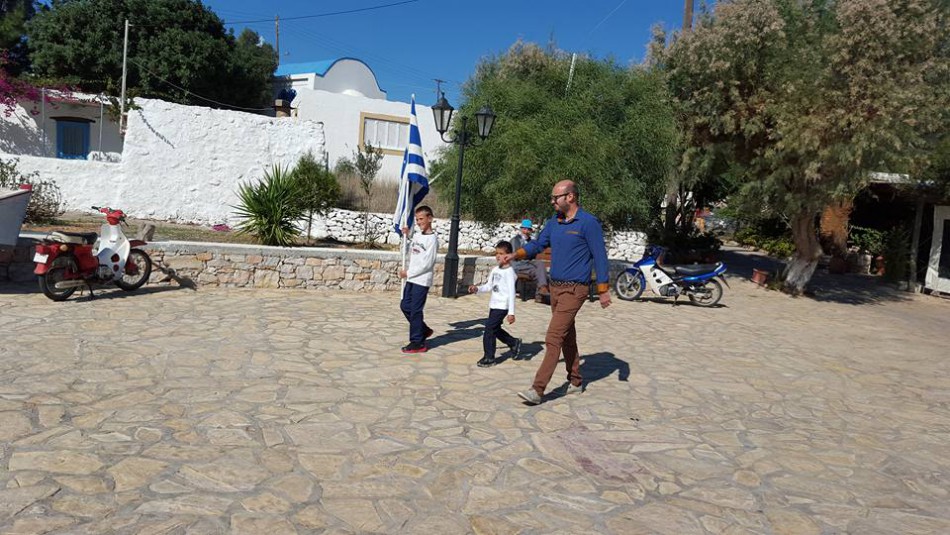 Και μπορεί το σχολείο του νησιού να έχει μόλις δύο μαθητές, όμως αυτό δεν εμπόδισε τον δάσκαλό τους να πάρει τα παιδιά και να παρελάσουν κανονικά για την επέτειο της 28ης Οκτωβρίου.