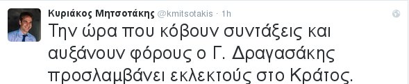 Καταγγελία σε βάρος της κυβέρνησης και συγκεκριμένα του Γιάννη Δραγασάκη έκανε ο Κυριάκος Μητσοτάκης, με ανάρτησή του στο Twitter.