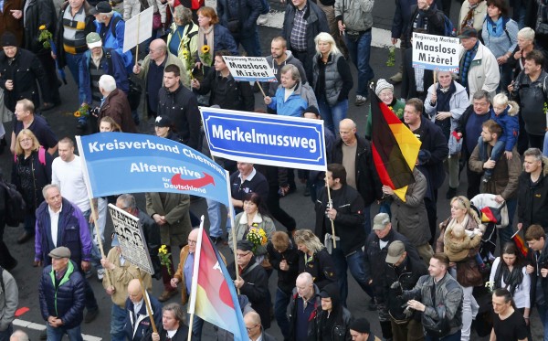Την διαδήλωση της AfD, στην οποία κυριάρχησαν συνθήματα όπως, «Στοπ στο χάος του ασύλου», «Η Μέρκελ πρέπει να φύγει», «Το άσυλο χρειάζεται όρια» και «Κόκκινη κάρτα για την Μέρκελ» συμμετείχαν, σύμφωνα με δημοσίευμα του ιδιωτικού τηλεοπτικού σταθμού n-tv και περίπου 20 σεσημασμένοι Νεοναζί.