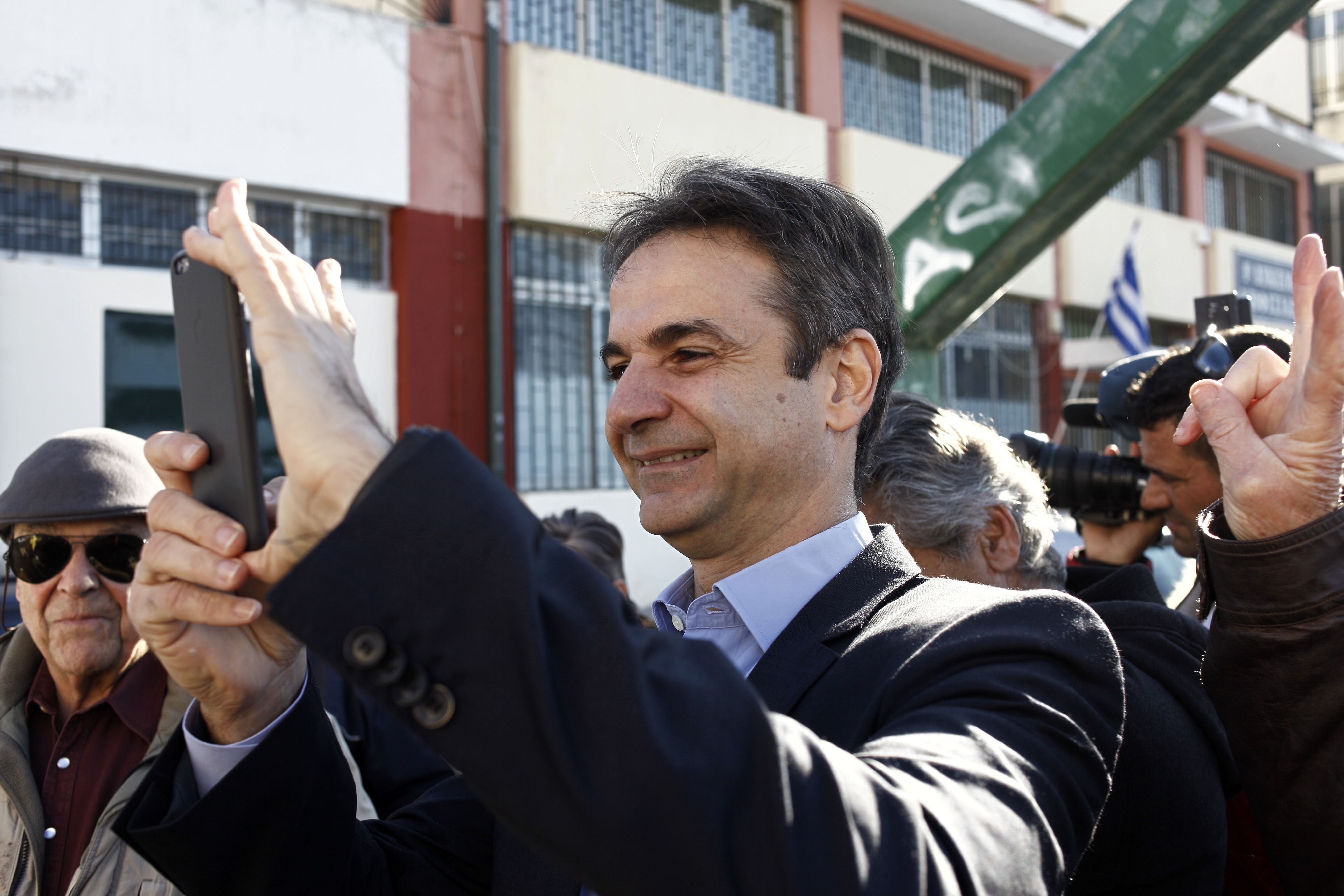 Τη σειρά του περίμενε υπομονετικά, στην ουρά, ο Κυριάκος Μητσοτάκης, προκειμένου να ψηφίσει στην Κηφισιά για τις εσωκομματικές εκλογές της ΝΔ.