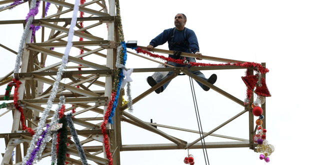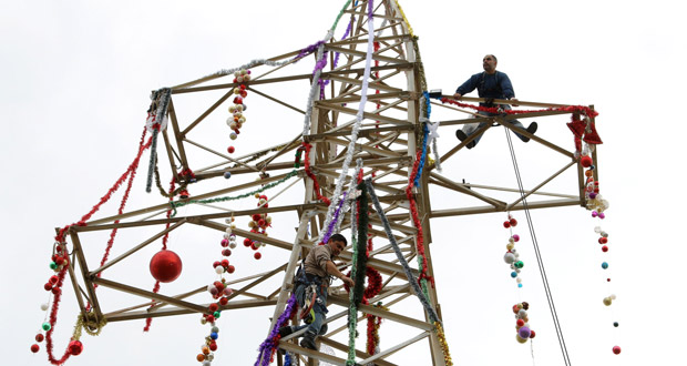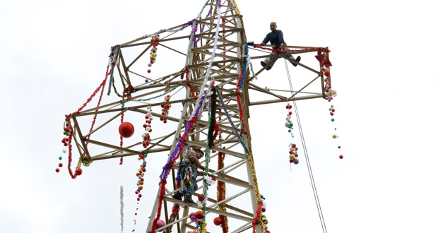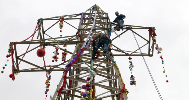Στόλισαν τον πυλώνα της ΔΕΗ εργαζόμενοι για τα Χριστούγεννα [εικόνες]