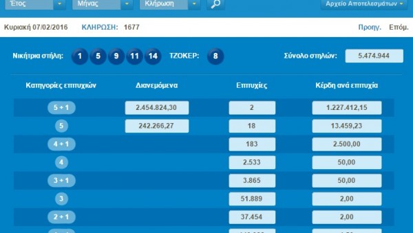 ύο τυχερά δελτία βρέθηκαν στη σημερινή κλήρωση του Τζόκερ (07/02/2016) που κερδίζουν από 1.227.412,15 ευρώ!