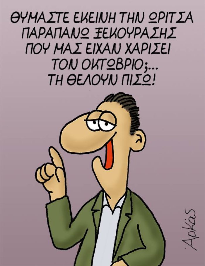 Ο Αρκάς, πάντως στη σελίδα του στο facebook, μόλις ανέβασε το παρακάτω εύστοχο σκίτσο...